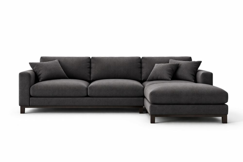 Divano ad angolo in tessuto grigio scuro 300x200x85 cm